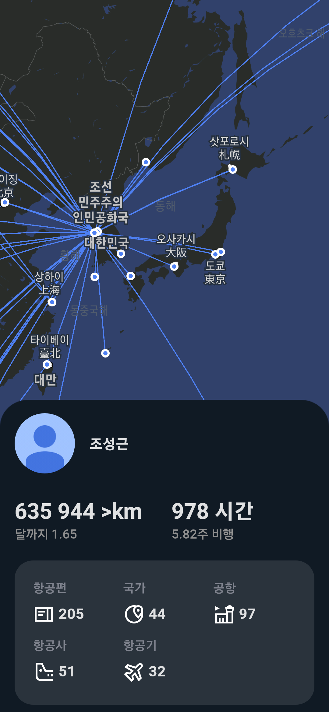 . 아래는 'App in The Air'라는 비행 기록 어플이다