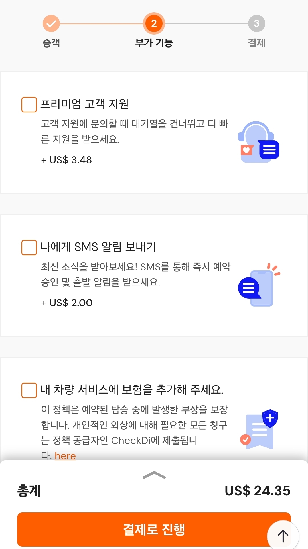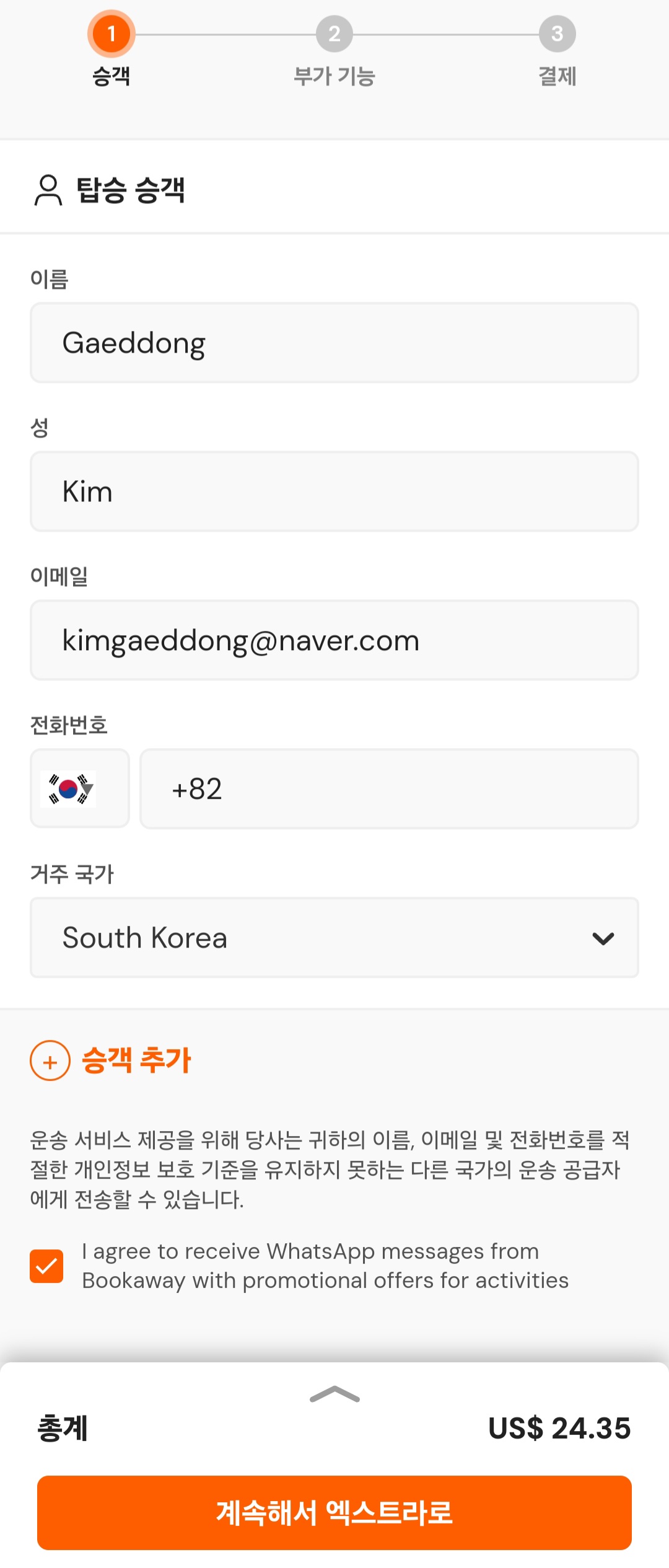 3. 승객정보(이름, 이메일, 번호) 입력