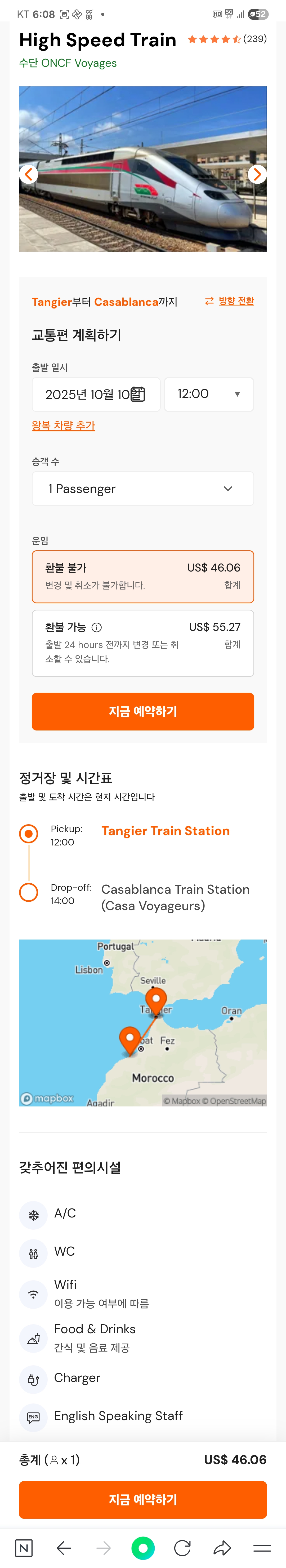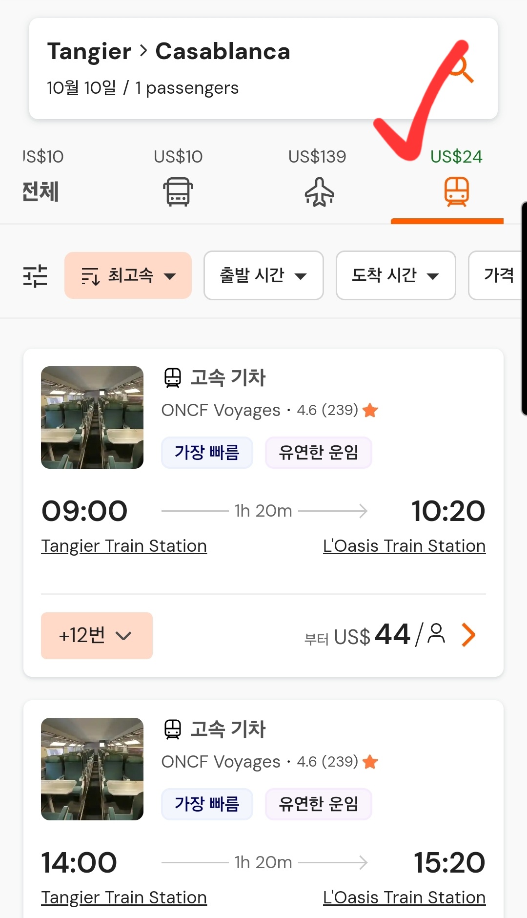 🚄 탕헤르-카사블랑카 도시이동