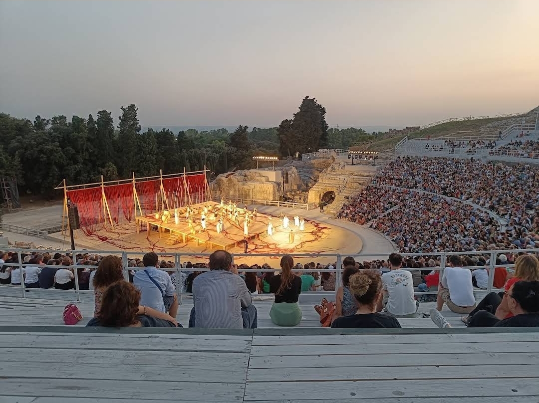그리스 극장에서 인간의 영광을 보고,