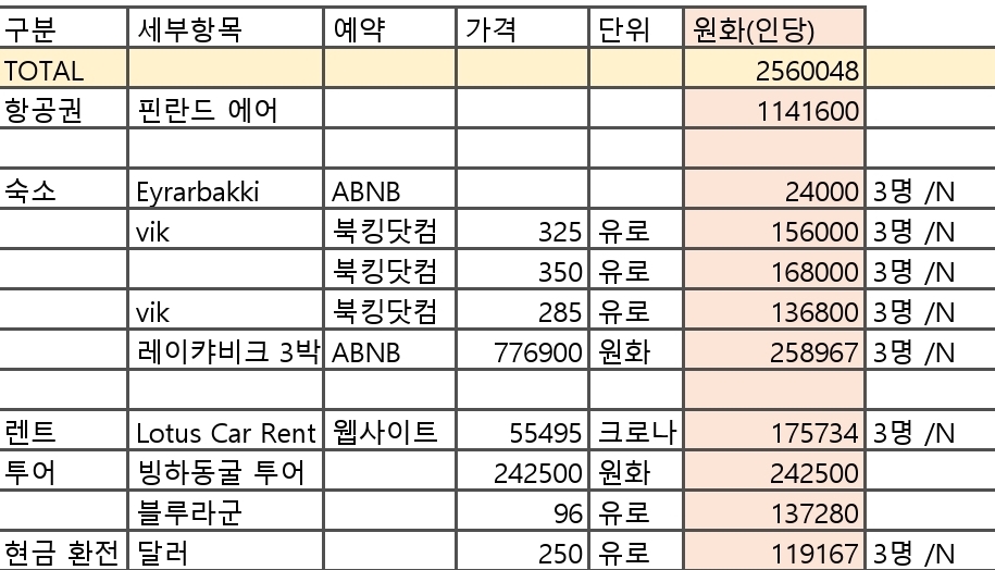 💶 아이슬란드 여행 비용